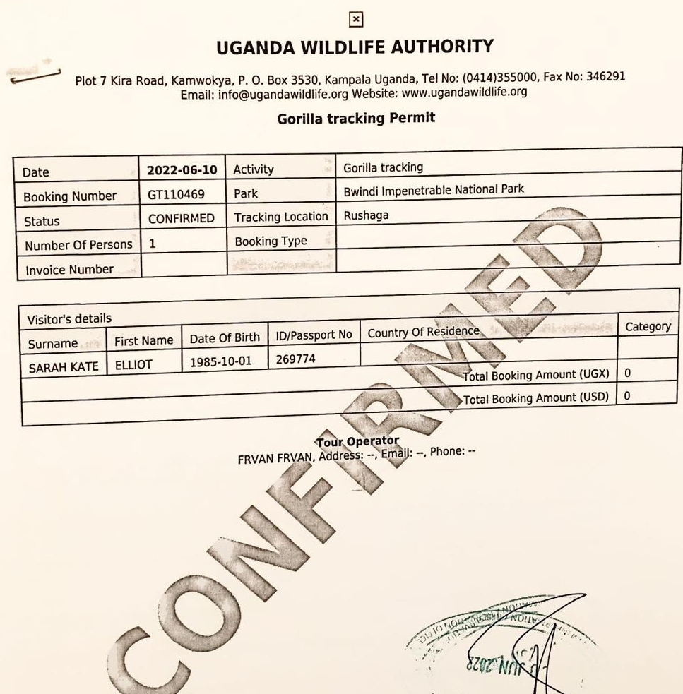 These permits are issued exclusively by the Uganda Wildlife Authority (UWA) and have set prices, regardless of season or group size.